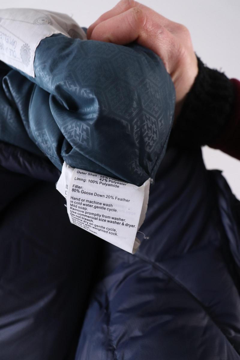 * has dirty areasMaterial: 58% nylon/polyamide42% polyester80% down, 20% featherShoulders: 48 cmChest: 118 cmLenght: 77 cmSleeve length: 69 cm
